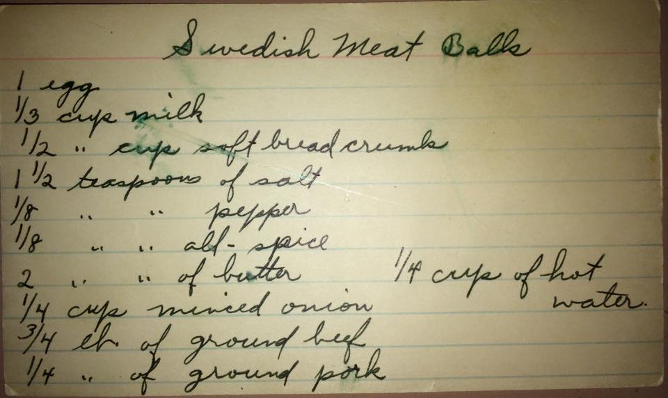 Ingredients 1 egg 1/3 cup milk 1/2 cup soft bread crumbs 1.5 tsp salt 1/8 tsp pepper 1/8 tsp allspice 2 tsp butter 1/4 cup hot water 1/4 cup minced onion 3/4 lb ground beef 1/4 lb ground pork Beat egg slightly, then add milk, seasoning, and breadcrumbs. Let this stand for 5 minutes. SautéContinue reading “Edith’s Swedish Meatballs”